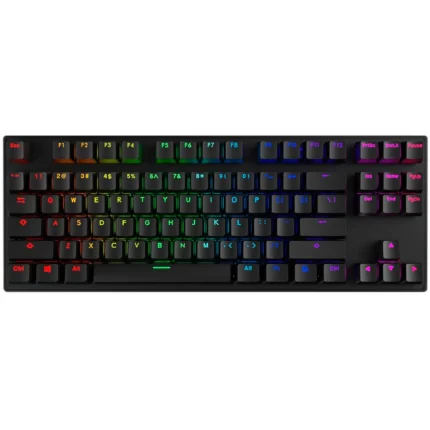 Teclado Mecánico 75% TKL87 Negro RGBes un periférico de alto rendimiento diseñado para gamers y mecanógrafos que buscan un equilibrio entre funcionalidad y un tamaño compacto. El factor de forma 75% o TKL (Tenkeyless) omite el teclado numérico, lo que reduce el tamaño del teclado y libera espacio crucial en el escritorio para el movimiento del ratón, sin sacrificar las teclas de función (F1-F12) o las flechas de navegación.